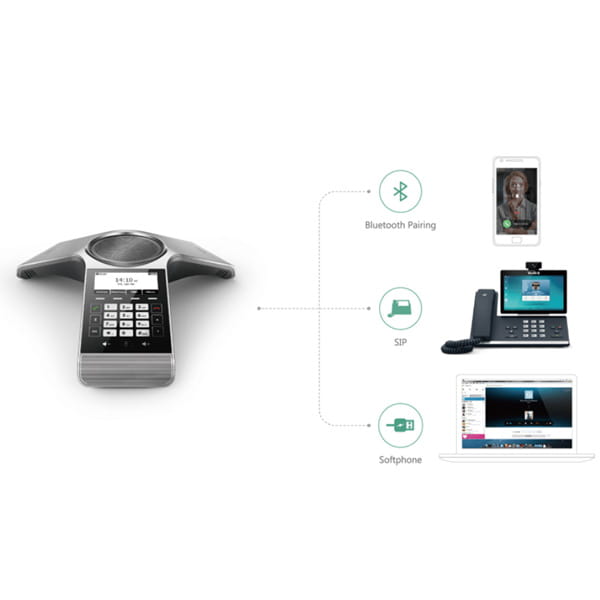 CP930W jest wyposażony w wiele przydatnych funkcji ułatwiających konferencję. Obsługuje parowanie Bluetooth lub USB Micro-B w celu połączenia z osobistymi urządzeniami. Dzięki temu możesz routować i scalać połączenia na urządzeniach osobistych w spotkaniu Yealink Hybrid UC Meeting na CP930W.